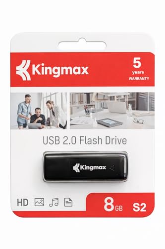 KINGMAX - كينج ماكس ذاكرة فلاش USB 2.0 8GB S2، ذاكرة محمولة لنقل البيانات بسرعة عالية، تصميم صغير ومتين، مثالي للمستندات والموسيقى والصور والفيديوهات، ضمان 5 سنوات