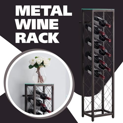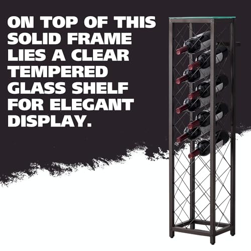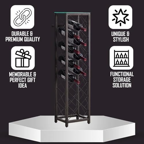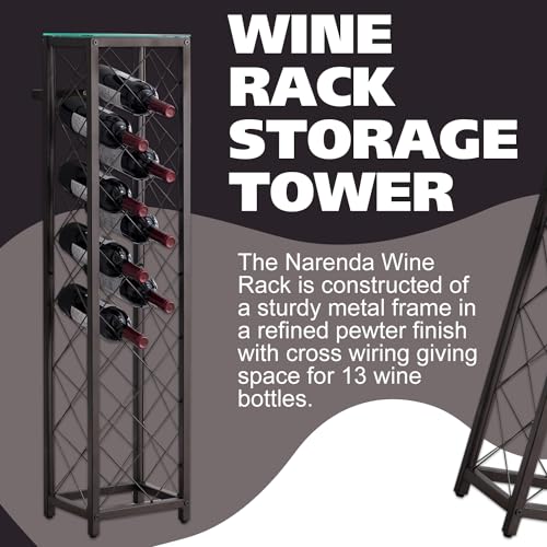 Kings Brand Furniture - برج تخزين النبيذ المستقل من مجموعة ناريندا من كينج براند فيرنيتشر، رف معدني لتخزين النبيذ قائم على الأرض - رف مع حامل زجاجات النبيذ - حامل زجاجات النبيذ - لون بيورتر - يتسع لـ 13 زجاجة.