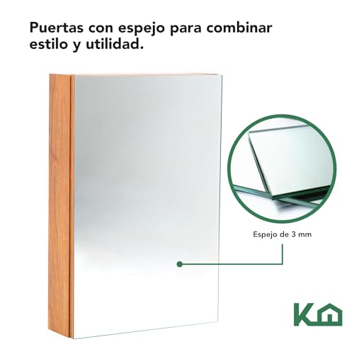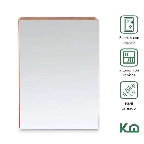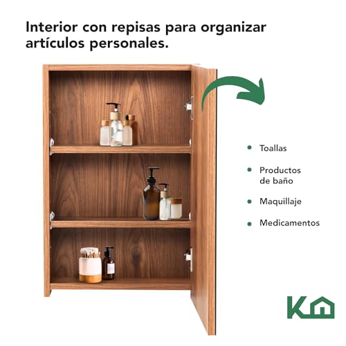 Kingshouse - خزانة أدوية للحمام بمراية وباب واحد، خزانة تنظيم مزودة برفوف من خشب ميلامين بسماكة 16 ملم وأبعاد (الطول × العرض × الارتفاع): 40 سم ×12سم ×60 سم، أثاث منزلي قابل للتجميع، من كينجز هاوس، بني قهوة