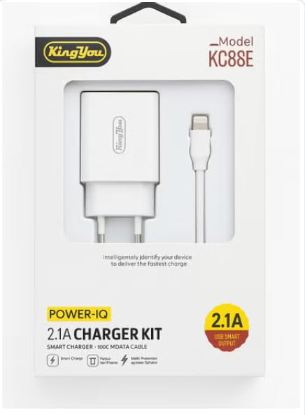 Generic - شاحن كينج يو KC88E، شاحن ذكي ٢.١ أمبير مع كابل لايتنينج ١٠٠ سم، حماية متعددة، أبيض
