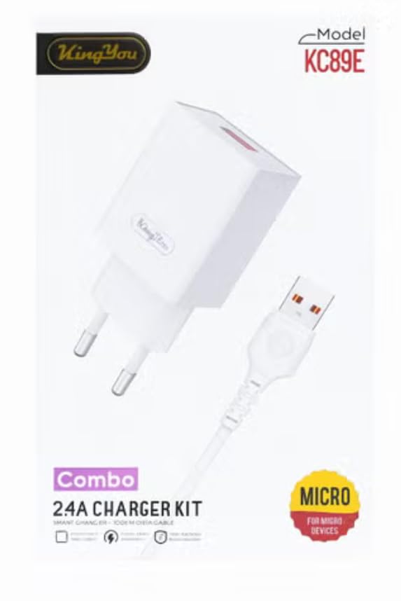 Generic - كينج يو KC89E، طقم شاحن ٢.٤ أمبير مع كابل مايكرو يو إس بي، شاحن سريع ذكي، قابس أوروبي، ١٠٠ سم