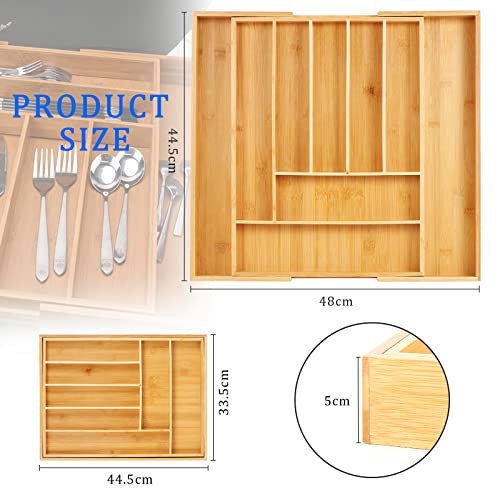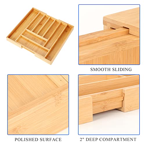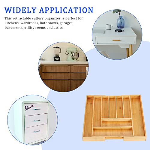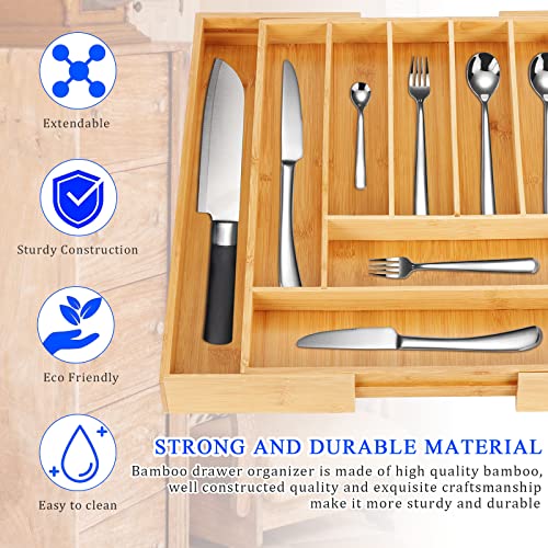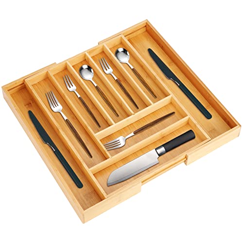 Kinsinder - منظم ادراج من الخيزران من كينسندر، صينية ادوات مائدة قابلة للتوسيع لتنظيم ادوات المطبخ وادوات تناول الطعام (9 فتحات)