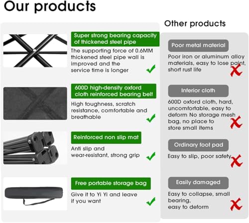 - 🔰【توفير المساحة】: أرجل الكرسي المطوي صغيرة للغاية وسهلة الوضع في شنطة التخزين. المساحة التي تشغلها الشنطة صغيرة جدًا، ويمكن وضعها في أي مكان