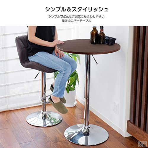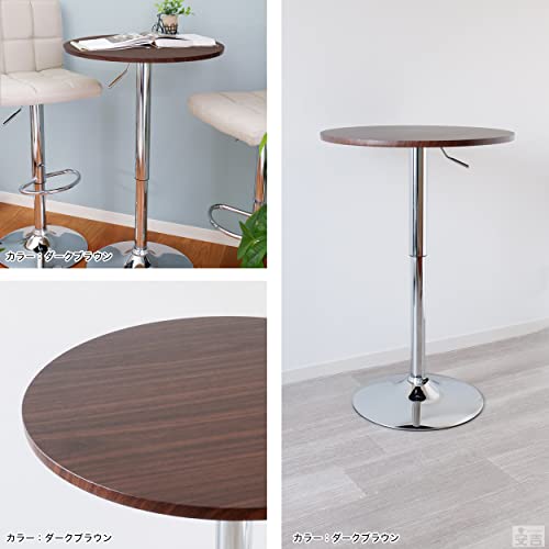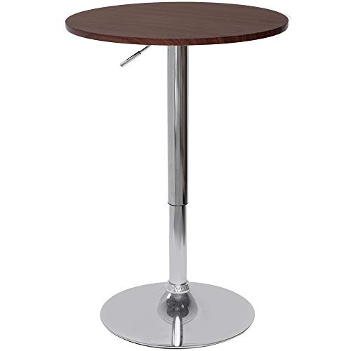 KIPROSTAR - طاولة بار خشبية دائرية بارتفاع قابل للتعديل - (لون بني داكن) - موديل BT-01A