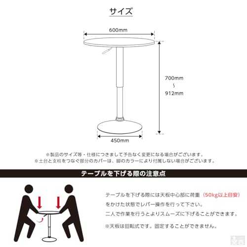 - ■ المزايا: تدور الطاولة 360 درجة. لا يمكن تثبيت اللوحة العلوية. يمكنك ضبط الارتفاع باستخدام الرافعة أسفل الطاولة. مثالية لطاولات البار أو المقهى وغرف الاستراحة وغرف التدخين. الطاولة مرتفعة حتى تتمكن من استخدامها أثناء الجلوس أو الوقوف
