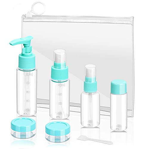 - 8 قطع/مجموعة زجاجات سفر تغليف مستحضرات التجميل زجاجة بخاخ ضغط فارغة للسفر من البلاستيك الشفاف مجموعة اتوميز للسفر