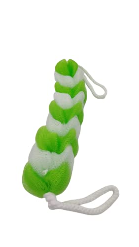 KIRA - إسفنجة استحمام طويلة قابلة للتمدد مع مقابض حبال للظهر، ليفة استحمام شبكية مضفرة قابلة للتمدد لتقشير الجسم للرجال والنساء من كيرا (أخضر)