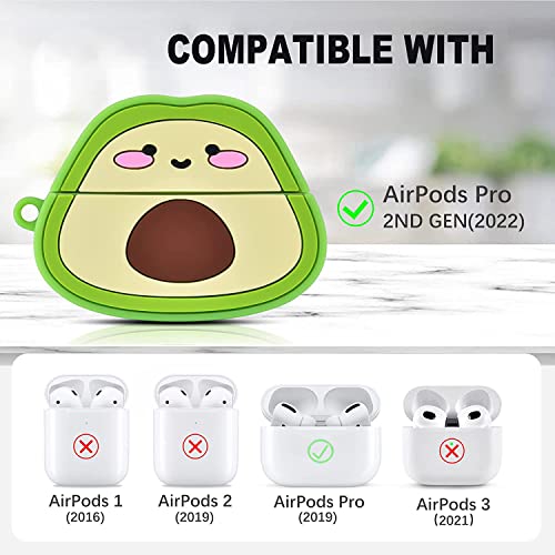 KIRDEIVY - حافظة حماية متوافقة مع ايربودز برو الجيل الثاني 2022 لطيفة لسماعات 2 بتصميم كرتوني غطاء واقٍ من السيليكون الناعم سلسلة مفاتيح ابل الجديدة /