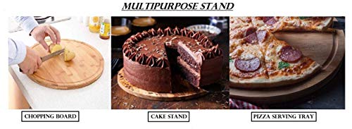 KIRFIZ - لوح تقطيع دائري متعدد الأغراض 3 في 1 من خشب البامبو والخشب الليفي متوسط الكثافة والأبلكاش للخضراوات والفواكه يستخدم لتقديم البيتزا وحامل للكيك، سطح عمل متين مزدوج الجوانب، بني، عرض 28 × ارتفاع 1.5 سم