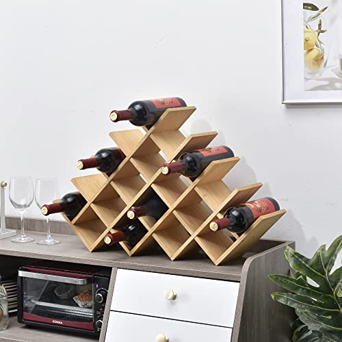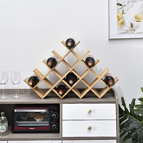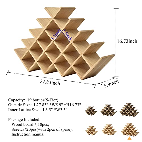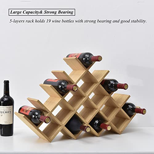 KIRIGEN - كيريجن رف مشروبات مكون من 19 زجاجة - رف عرض النبيذ من 5 طبقات من الخشب الطبيعي / رف تخزين المشروبات قائم بذاته يوضع على سطح الطاولة - حامل زجاجات/رف زجاجي للخزانة من 5 طبقات طبيعي XHJJ5-NA