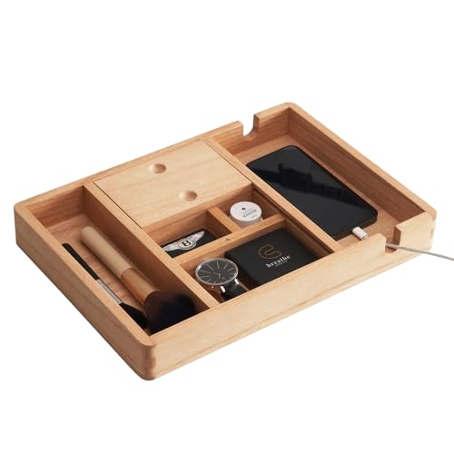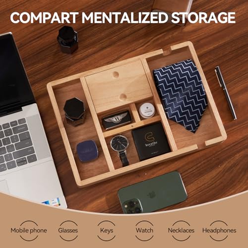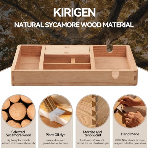 KIRIGEN - كيريجن صينية تنظيم خشبية مكونة من 6 اقسام لحمل الجوال والمجوهرات والساعات والاكسسوارات والمكتب او خزانة الملابس مع غطاء مغناطيسي SSP-NA الخشب متعدد الألوان