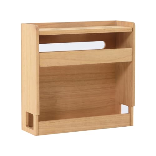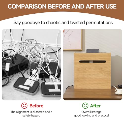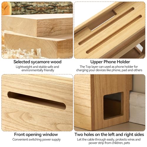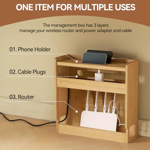 KIRIGEN - صندوق تخزين راوتر لاسلكي متعدد الطبقات من كيريجن، صندوق خشبي لتنظيم وتنظيم كيبلات الطاقة للمكتب والمنزل، طبيعي (ال واي كيو-ان ايه)
