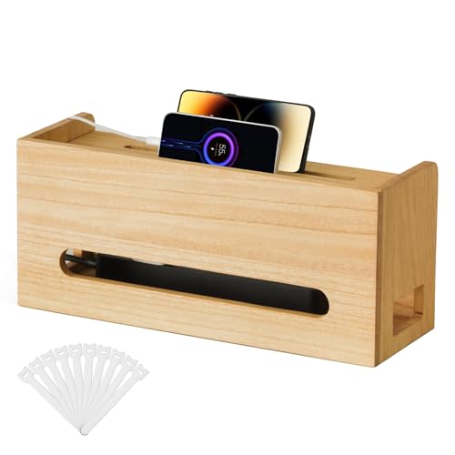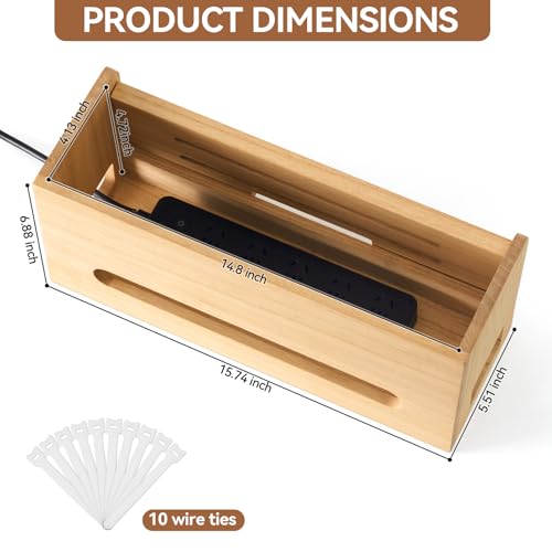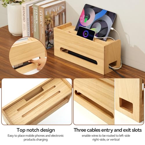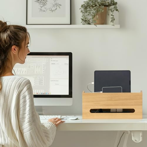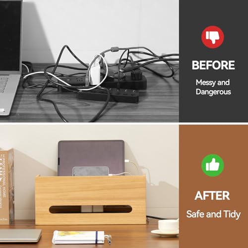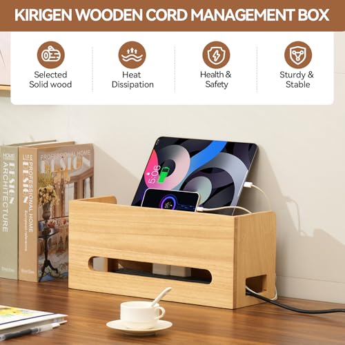 KIRIGEN - صندوق خشبي من كيرجن لتنظيم الاسلاك والكيبلات والأسلاك لاخفاء شرائط الطاقة والمقابس الكهربائية، واقي محطة اسلاك المكتب للتلفزيون ونظام موزع USB والكمبيوتر وأسلاك الطاقة والجوال من دي اكس اتش - ان ايه