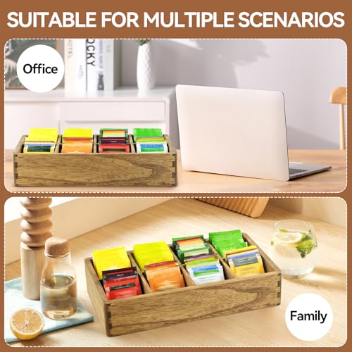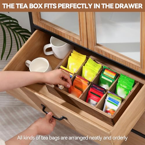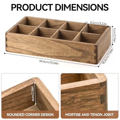 KIRIGEN - صندوق تخزين أكياس شاي وقهوة خشبي، 8 أقسام مستطيلة، 34.4 × 19.2 × 7 سم، بني، (CYH8G-DBR) من كيرجين