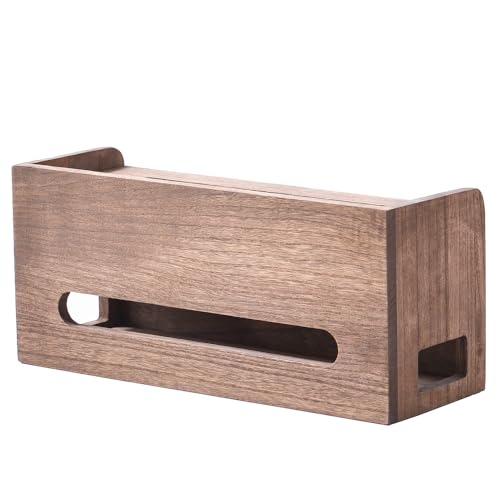 KIRIGEN - كيريجن صندوق كابلات خشبي - منظم كابلات من خشب الباولونيا الطبيعي، لمسة نهائية للزيوت النباتية، حل امن وانيق لادارة الكابلات، بني