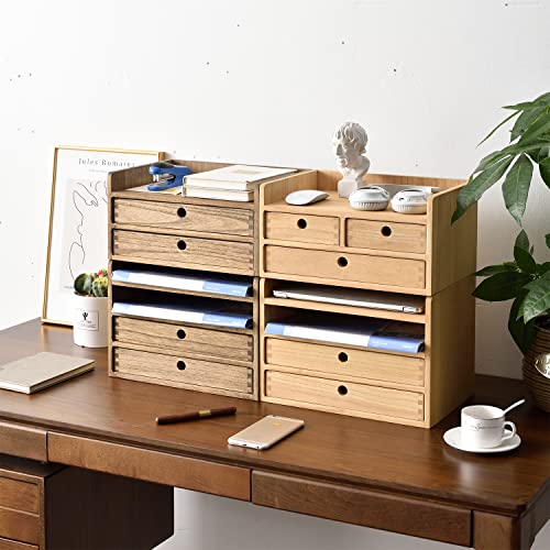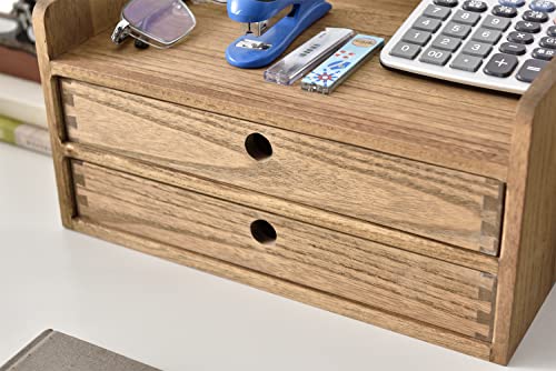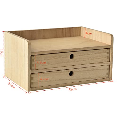 KIRIGEN - كيريجن منظم مكتب خشبي مع درجين ورف واحد، لوازم مكتبية يمكنك صنعها بنفسك، صندوق تخزين خشبي، صندوق مكياج طبيعي