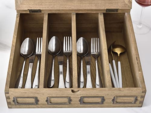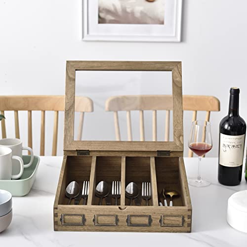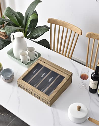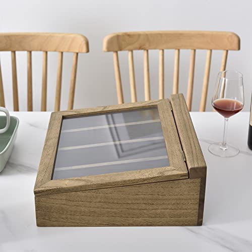 - [تصميم لطيف[: تصميم صندوق تخزين أدوات المائدة الخشبي مع غطاء يمكن أن يمنع الحشرات والغبار ويحافظ على أغراضك مرتبة.