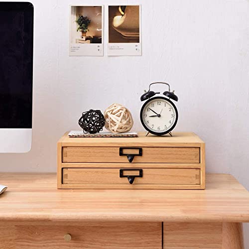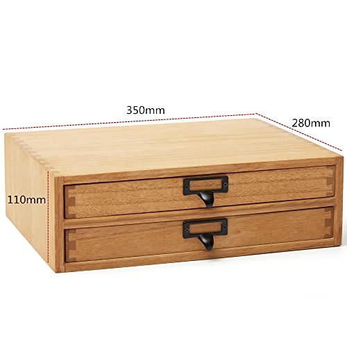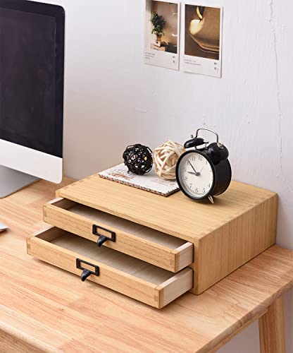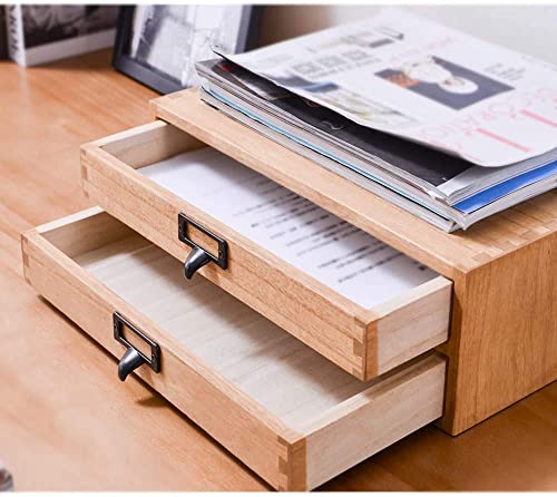 KIRIGEN - خزانة مكتب خشبية بدرجين من كيريجن، تصميم مسطح - منظم ملفات سطح المكتب لحامل طابعة الماكينات، لون طبيعي