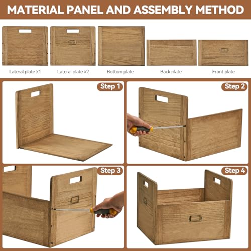 - [مع مقابض وقوة تحمل قوية]: توفر فتحات المقبض في هذه الصناديق الخشبية ثباتًا قويًا وسهولة الحمل أو السحب والخروج من الرفوف أو الطاولات. موفرة للمساحة ومريحة لتخزين السجلات.