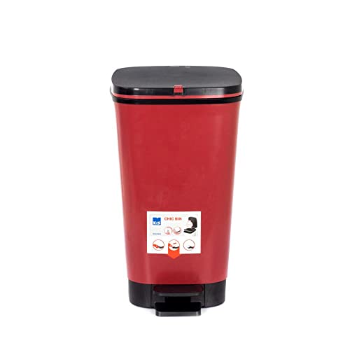 Kis - سلة مهملات بدواسة 30 لتر 40 × 27 45 سم أحمر من كي اي اس كايس بلاستيك الضغط بالقدم