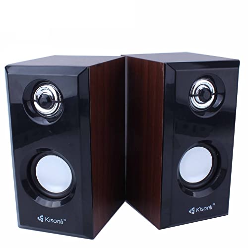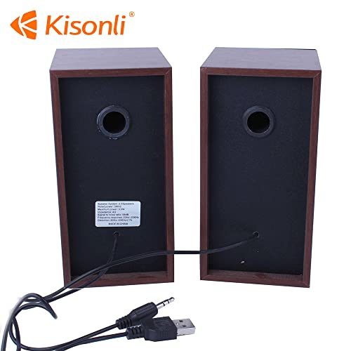 Kisonli - مكبر صوت ميني خشب للكمبيوتر 2.0 T-001 بمنفذ USB من كيسونلي