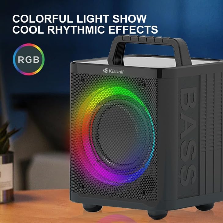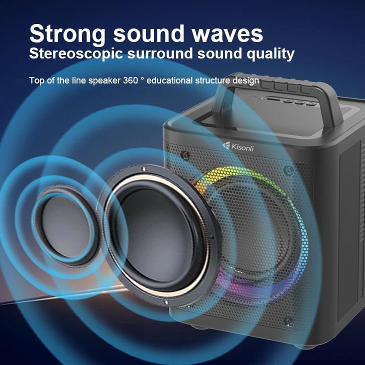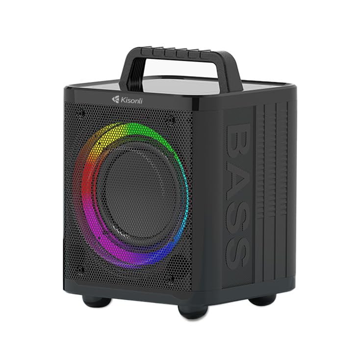 Kisonli - كيسونلي مكبر صوت بلوتوث كيه 4، طاقة عالية 40 واط، مضخم صوت محمول للاماكن الخارجية 4000 مللي امبير في الساعة مع اضواء LED، اسود