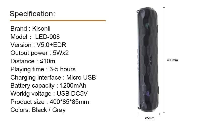 Kisonli - مكبر صوت بلوتوث ستيريو بالفضاء اللوني ار جي بي موديل LED - 908 من كيسونلي ، انظمة بميكروفون نظام كمبيوتر ساوند بار - اسود