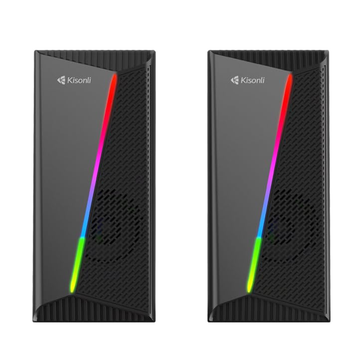 Generic - مكبر صوت X30 للوسائط المتعددة للكمبيوتر من كيسونلي - صوت ستيريو 6 واط مع اضاءة RGB ديناميكية، USB 2.0 + وصلة ايه يو اكس 3.5 ملم، للكمبيوتر واللابتوب والالعاب والجوال - اسود
