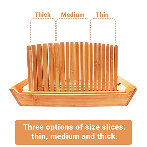 Kiss Core - قطاعة خبز من البامبو للخبز المنزلي، أداة التقاط الفتات، قطاعة رغيف قابلة للطي وصغيرة الحجم، دليل تقطيع 3 أحجام من كيس كور