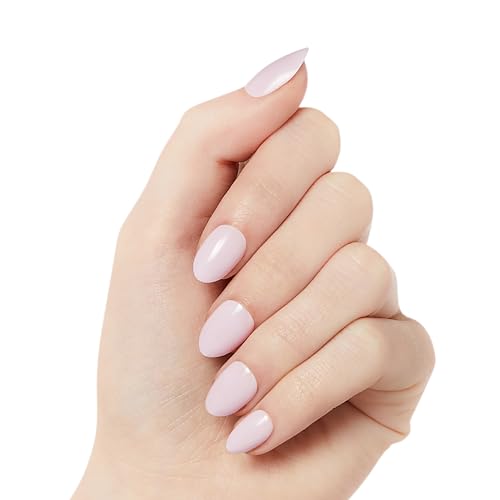 KISS - أظافر تركيب عن طريق الضغط جل فانتاسي مع صمغ للأظافر بنمط "بيور لوف" ولون وردي فاتح، مقاس قصير، شكل لوزي، تشمل 28 ظفرًا وصمغ 2 جرام وستيك مانيكير واحدة ومبرد صغير واحد من كيس