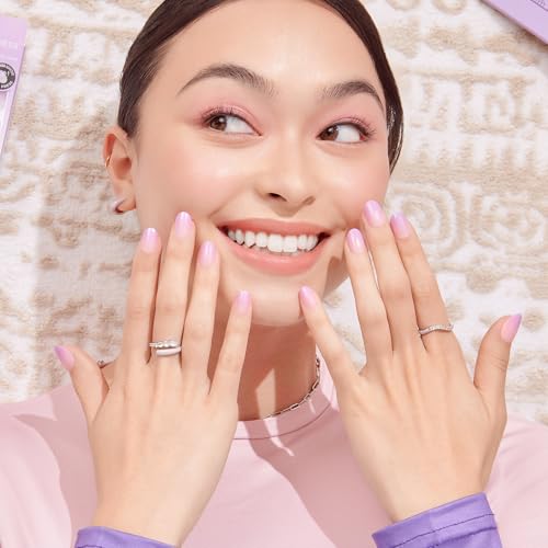 imPRESS - لاصق اظافر امبريس بالضغط على الأظافر «Take A Chance» بلون ارجواني قصير بيضاوي الشكل حاصل على براءة اختراع من كيس، لاصق قوي لا ينقسم ولا يتلطخ، 30 مسمار صناعي ذاتي اللصق