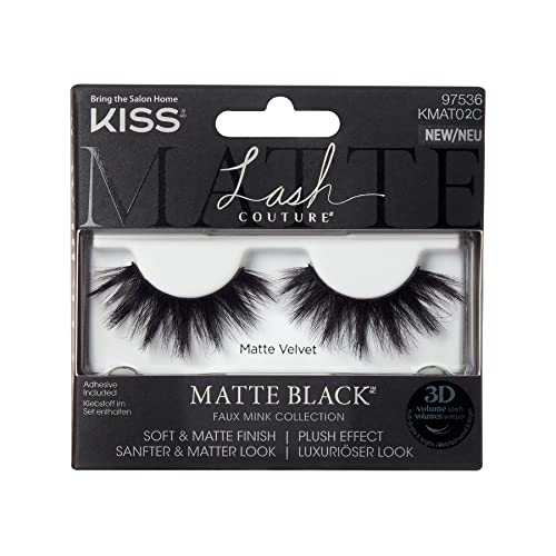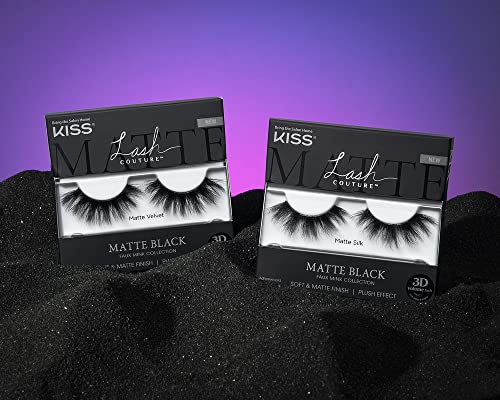 KISS - زوج واحد من الرموش الصناعية لاش كوتور، بلون اسود غير لامع، رموش ناعمة وغير لامعة من المنك الصناعي مع شريط مرن، يتضمن غراء للرموش من كيس
