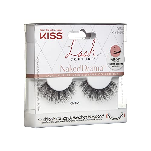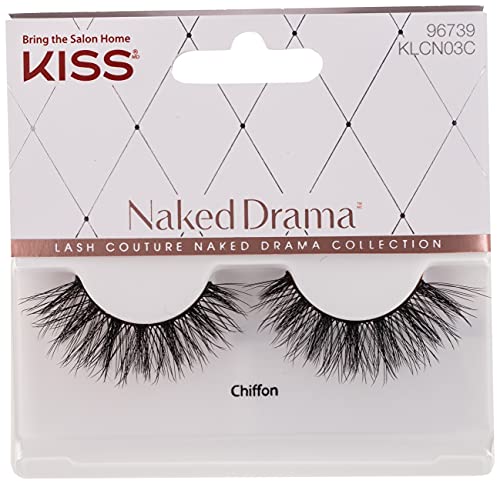 KISS - مجموعة رموش ثلاثية الابعاد بكثافة كاملة ومنفوشة من فروة المنك الصناعي من مجموعة ناكد دراما من كيس لاش كوتور بتقنية كوشن فليكسي وسبليت تيب بتصميم مدبب وقابل لاعادة الاستخدام ومناسب للعدسات، شيفون، زوج