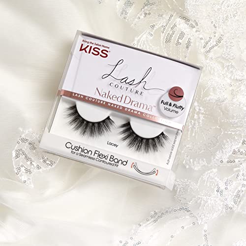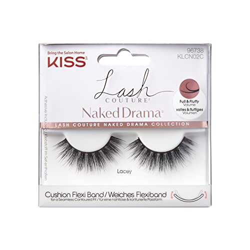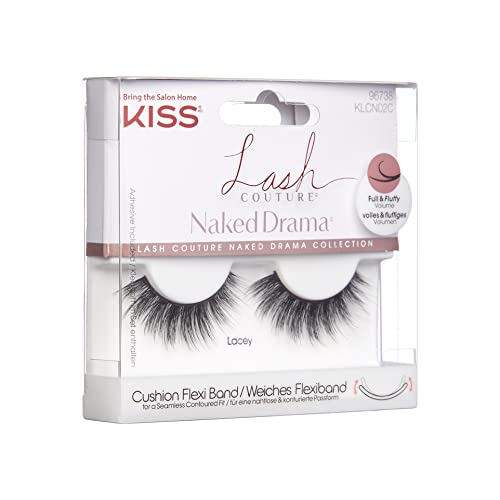 KISS - مجموعة رموش ثلاثية الابعاد بكثافة كاملة ومنفوشة من فروة المنك الصناعي من مجموعة ناكد دراما من كيس لاش كوتور بتقنية كوشن فليكسي وسبليت تيب بتصميم مدبب وقابل لاعادة الاستخدام ومناسب للعدسات، ليسي، زوج