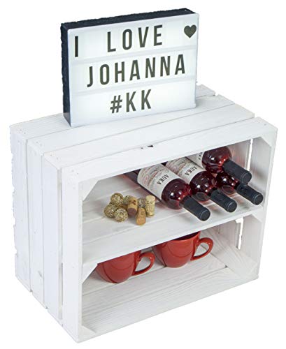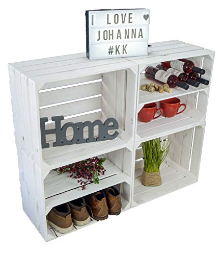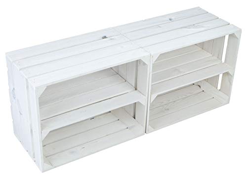Kistenkolli Altes Land - مجموعة صناديق فاكهة التس لاند جوانا من كيستنكولي، من قطعتين، بلون أبيض مع قاعدة خشبية ولوح في الوسط، صندوق تخزين طويل، (مجموعة من صندوقي جوانا أبيض)