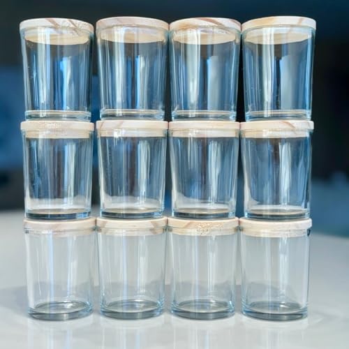 e-Variedades Comércio de Utilidades - طقم برطمانات توابل زجاج بغطاء خشب، عبوة من 12 قطعة