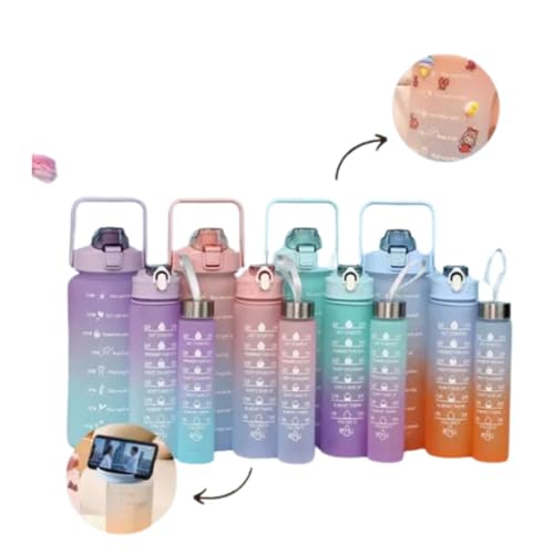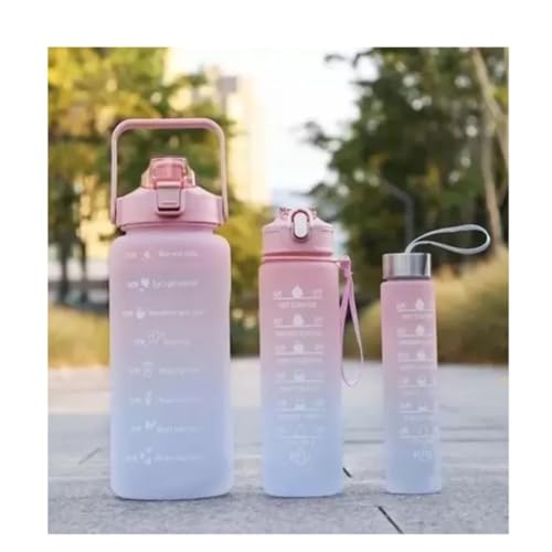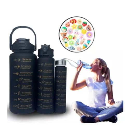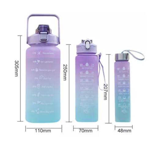 CAYCOIN - مجموعة من 3 زجاجات مياه قابلة للضغط بسعة 2 لتر وبتصميم أكاديمي تحفيزي ملون ثلاثي الأبعاد بعبارات برتغالية (أخضر)