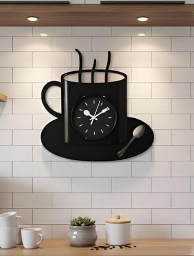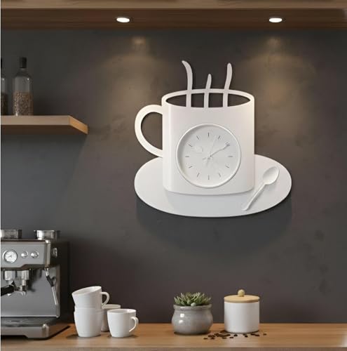 Generic - اكسسوار مطبخ - ساعة حائط انيقة على شكل فنجان قهوة مثالية لتعزيز أجواء المطبخ او المقهى بمواد خفيفة الوزن