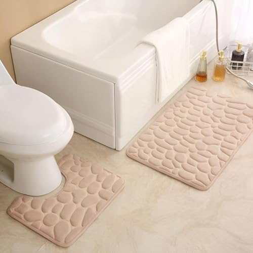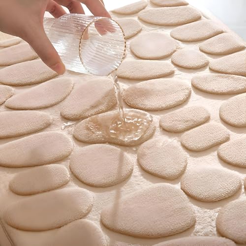 Generic - سجادة للمطبخ والحمام، إسفنج مانع للانزلاق مع فايبر مرجاني ناعم، امتصاص عالٍ، سهلة التنظيف لضمان السلامة في المناطق الرطبة، بيج 91×30.4 سم