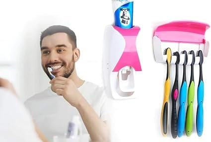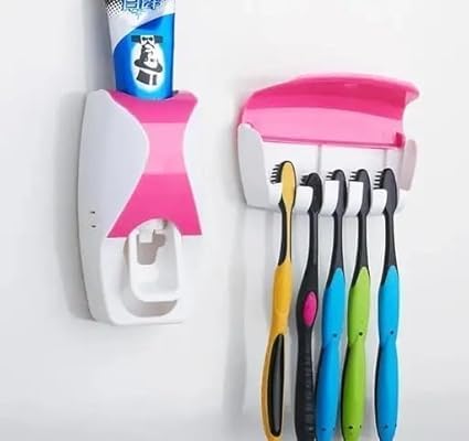 Generic - ادوات مطبخ وحمام (موزع معجون أسنان مع حامل فرشاة أسنان بـ 5 فتحات يثبت على الحائط)