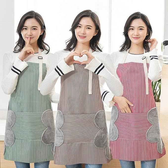 LC - مريلة مطبخ للنساء والرجال، مريلة مطبخ قابلة للتعديل مع جانبين لمسح اليدين، مناشف مخملية مرجانية مخيطة مقاومة للماء، مريلة طبخ للجنسين متعددة الالوان