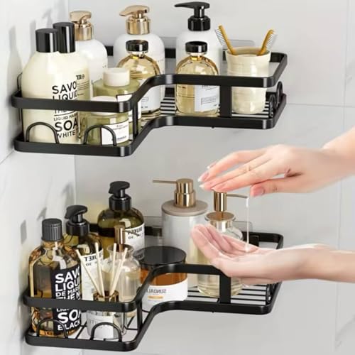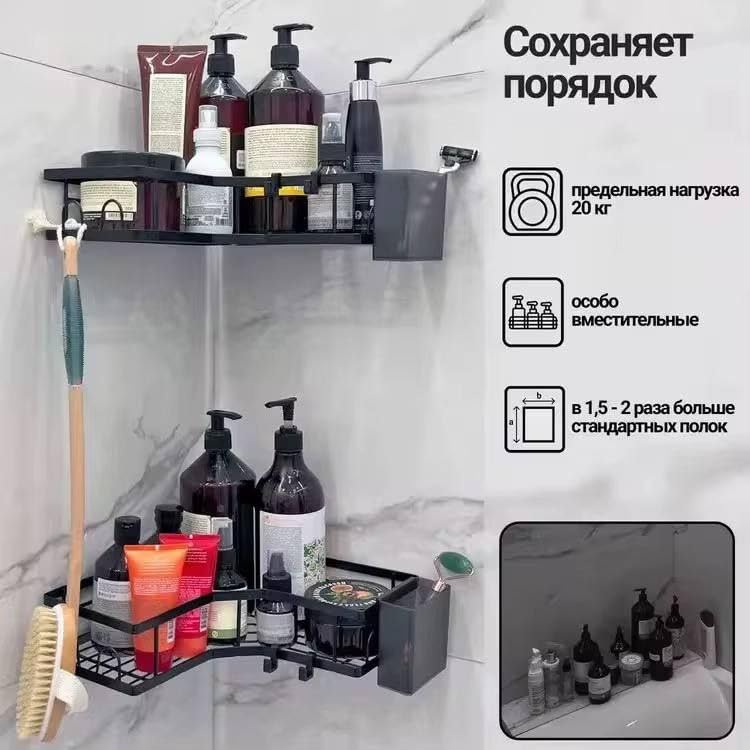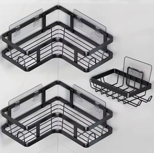 Generic - منظم زاوية للمطبخ والحمام - مجموعة من 5 قطع من الستانلس ستيل - حامل زاوية + حامل صابون + حامل ادوات - تركيب لاصق قوي