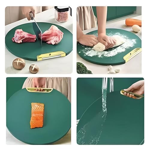 Generic - لوح مطبخ - سطح دائري مزدوج الجوانب شديد التحمل مع حواف غير قابلة للانزلاق مصمم لتقطيع دقيق للحوم والخضروات والفواكه والجبن بلون تركواز انيق (قطعة واحدة)