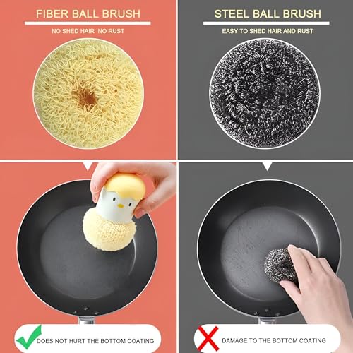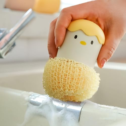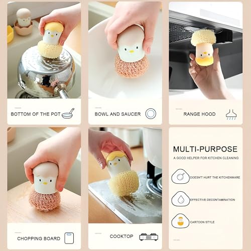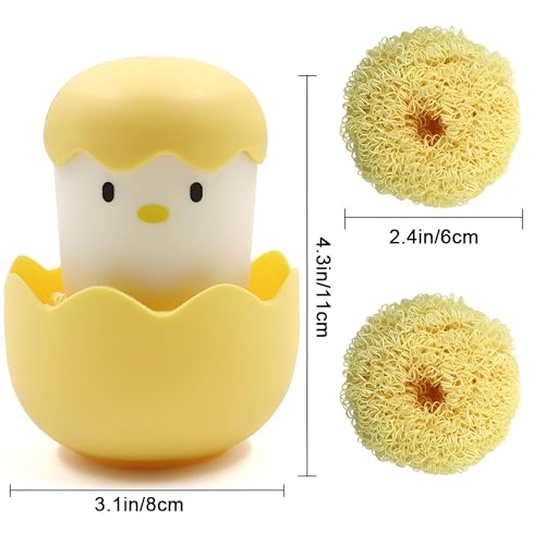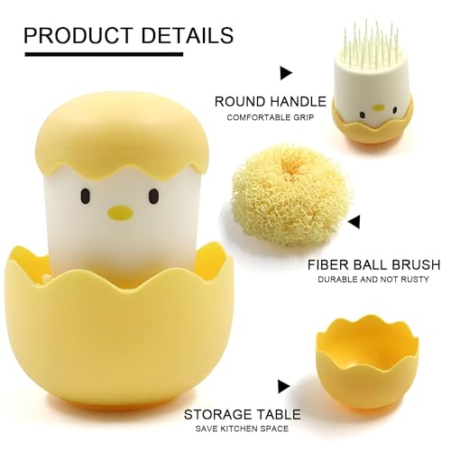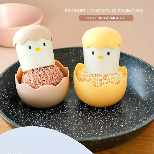 - 【تصميم مبتكر】 كرة تنظيف قابلة للفصل لسهولة الاستبدال. تصميمات لطيفة لمقبض الدجاج مع قاعدة تخزين قشر البيض بدون فوضى على سطح المطبخ.