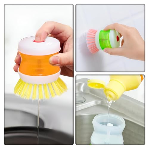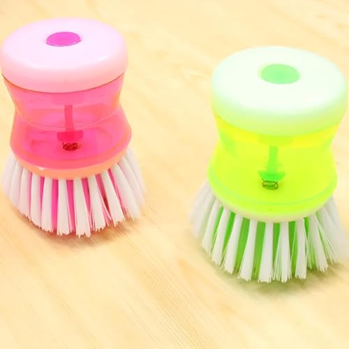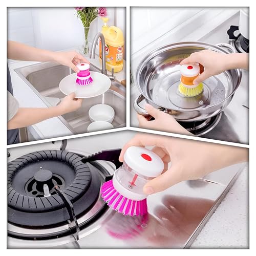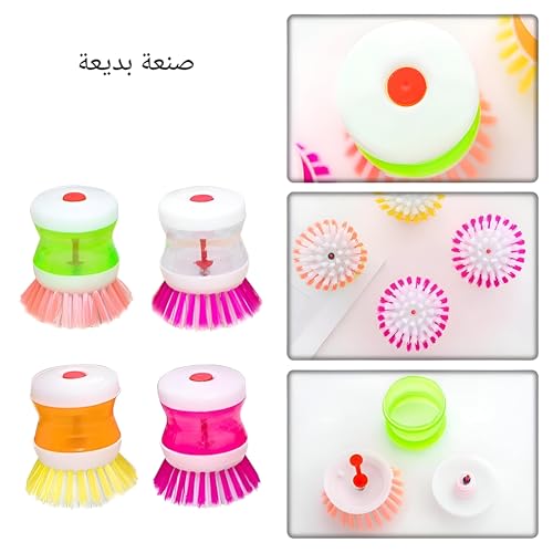 Generic - مجموعة فرش مطبخ - قطعتان لغسل الاطباق والاواني مع ميزة توزيع الصابون وفرشاة تنظيف محمولة