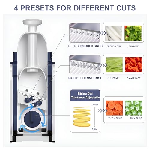Generic - قطاعة مطبخ - نظام شفرة دقيق لجوليان الموحد والمكعبات وشرائح الخضار والفواكه؛ قاعدة غير قابلة للانزلاق، سهلة التنظيف، مثالية للطهاة المنزليين.