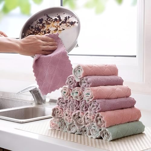 Generic - أقمشة تنظيف المطبخ - 20 مجموعة من مناشف الأطباق المصنوعة من الصوف المرجاني فائقة النعومة ، مثالية لامتصاص الانسكابات والتجفيف السريع في المنازل المزدحمة.