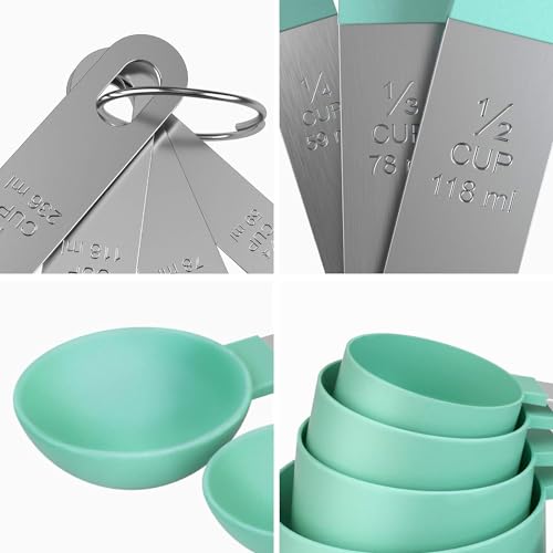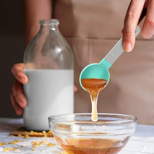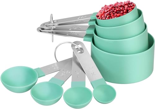 - ثمانية مقاسات لتناسب أي وصفة: تتضمن معيار 1 كوب 1/2 كوب 1/4 كوب 1/3 كوب 1/4 ملعقة صغيرة و1/2 ملعقة صغيرة وملعقة كبيرة للحصول على قياسات دقيقة لكل من المكونات الرطبة والجافة.