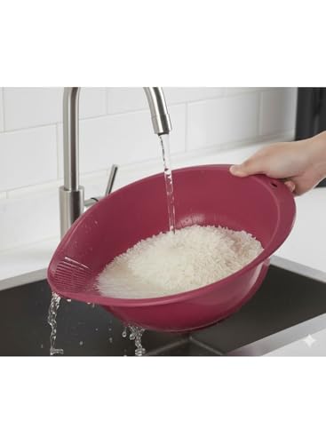 generic - مصفاة مطبخ لغسل الارز والفواكه - تصريف سريع وخالي من الفوضى (تصميم فتحة جانبية ذكية)، مريحة وسهلة