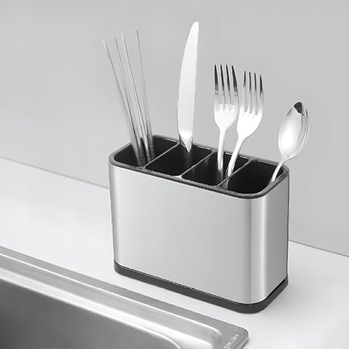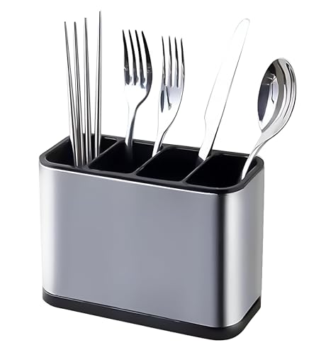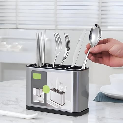 Generic - صفاية للمطبخ - صفاية من الاستانلس ستيل مع علبة بالتنقيط القابلة للإزالة ومقصورات للملاعق والشوكات والسكاكين وعصي الطعام
